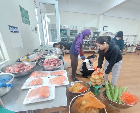 Công tác giao nhận thực phẩm trong nhà trường luôn được kiểm soát chặt chẽ. Thực phẩm khi nhận vào trường phải luôn đảm bảo về số lượng và chất lượng. Quy trình giao nhận thực phẩm được thực hiện nghiêm túc với sự tham gia của các thành phần: nhân viên nấu chính, đại diện Ban giám hiệu, giáo viên và đại diện phụ huynh học sinh trực tiếp nhận và kiểm tra chất lượng thực phẩm, có ký xác nhận đầy đủ vào sổ giao nhận thực phẩm.