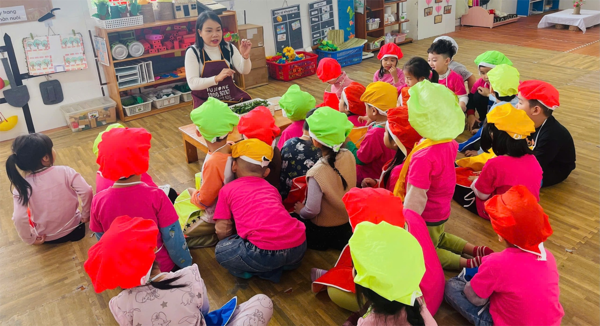 Mời các bậc phụ huynh cùng xem những khoảnh khắc đáng yêu của các bé khi thực hành kỹ năng tuốt rau ngót tại các lớp