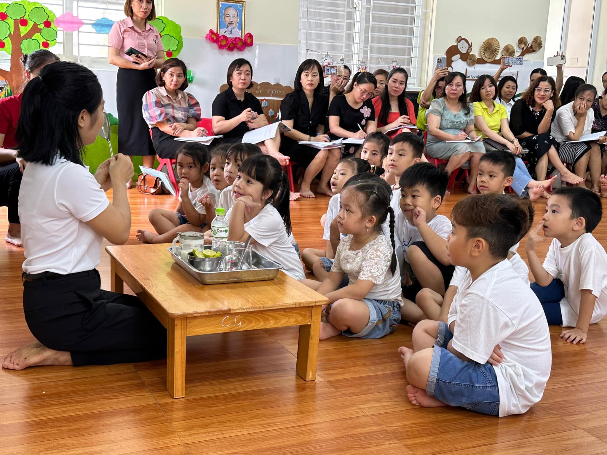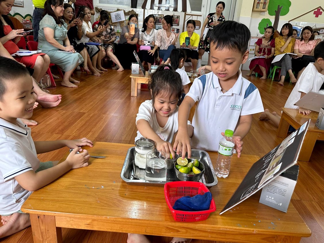 Sau khóa học tập huấn Ứng dụng phương pháp dạy học STEAM trong thực hiện chương trình giáo dục Mầm non do Phòng Giáo dục và Đào tạo Quận Hồng bàng tổ chức từ ngày 01/8 - 05/8/2023. Cô giáo Nguyễn Thị Ngân – Giáo viên Trường mầm non Bạch Đằng đại diện cho các trường mầm non trong Quận Hồng Bàng minh họa hoạt động STEAM: “Pha nước chanh”, độ tuổi: 4-5 tuổi.