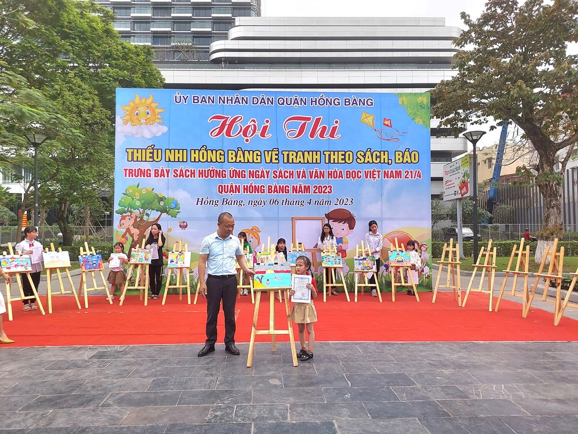 hực hiện Kế hoạch số 45/KH-UBND ngày 28/02/2023 về tổ chức Cuộc thi vẽ tranh thiếu nhi hè năm 2023; Kế hoạch số 88/KH-UBND ngày 31/3/2023 của UBND quận Hồng Bàng về tổ chức Hội thi Thiếu nhi Hải Phòng vẽ tranh theo sách, báo. Hôm nay ngày 6/4/2023 trường Mầm non Bạch Đằng có 2 bé tham dự hội thi vẽ tranh: Bé Đào Minh Thư và bé Dương Bảo Ngọc. Trải qua 120 phút tham gia vẽ tranh cùng các anh chị và các bạn trong quận Hồng Bàng. Bé Đào Minh Thư lớp 5C2 vô cùng xuất sắc đã đạt giải Nhì trong hội thi vẽ tranh cấp quận và vượt xa 72 thí sinh để tiếp tục tham gia thi cấp thành phố.