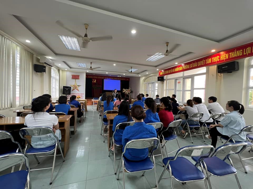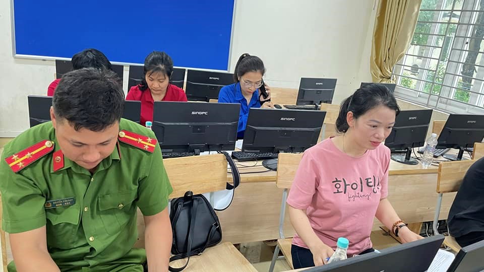 Đoàn viên thanh niên trường Mầm non Bạch Đằng nhiệt tình, trách nhiệm phối hợp cùng với Công an phường Sở Dầu đến các điểm tập trung tại phường Sở Dầu, tiểu học Bạch Đằng hướng dẫn người dân kích hoạt ĐDĐT trực tuyến.