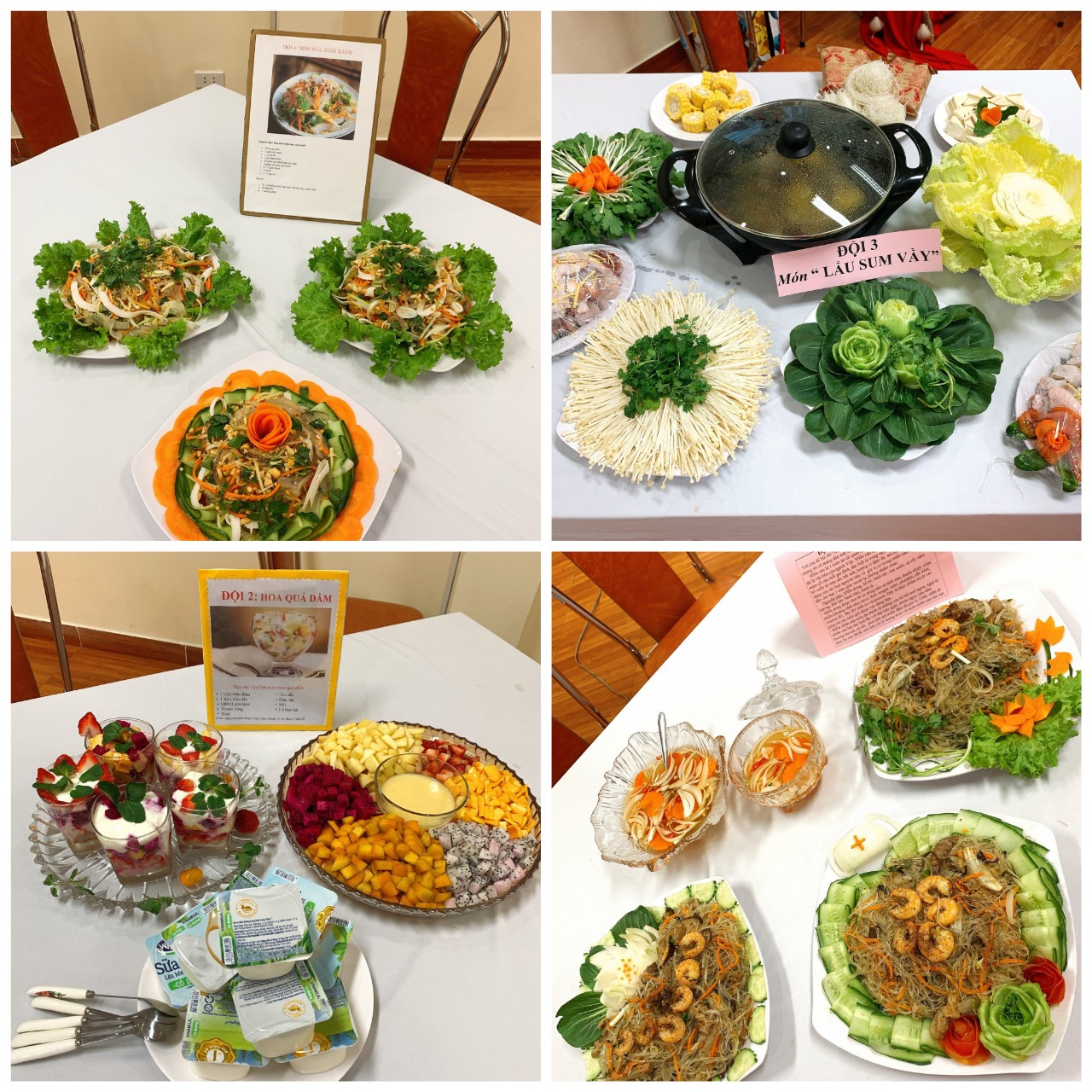 Sau 45 phút, với sự chuẩn bị chu đáo và sự nhiệt tình của 4 đội thi đã hoàn thành sản phẩm của mình bằng những món ăn rất ngon và hấp dẫn.